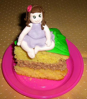 Ho realizzato una mini tortina, con il preparato per torte senza glutine, da cui ho ricavato una fetta che ho poi decorato con del MarshMallow Fondant (in alternativa in commercio si trova la Pasta di Zucchero SENZA GLUTINE).
