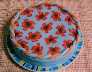 La torta è ricoperta in pasta di zucchero, la lavorazione è stata abbastanza laboriosa, ma il risultato è molto carino.